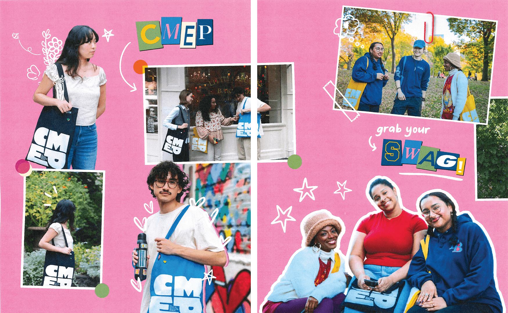 The CMEP SWAG Campaign is dedicated to student- and staff-designed merchandise to build community, foster inclusion, and promote the office as an accessible resource for diversity, inclusion, and community engagement. Inspired by the university's young and vibrant community, the campaign highlights the diverse and multicultural ground. The three social posts and printed zines
